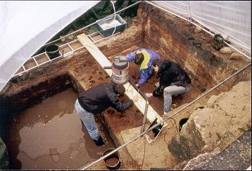 zwei Restauratoren des Westfälischen Museums für Archäologie