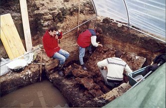 Mit vereinten Kräften konnte die Platte hochgeklappt werden - alle sind gespannt auf das Ergebnis. Schnell ist zu erkennen, daß der Abguß gut geworden ist, sogar noch besser als erwartet. Das erste Foto wird geschossen.